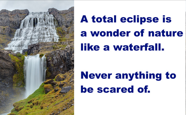 Text on graphic: an eclipse is a wonder of nature like a waterfall. Never anything to be scared of.