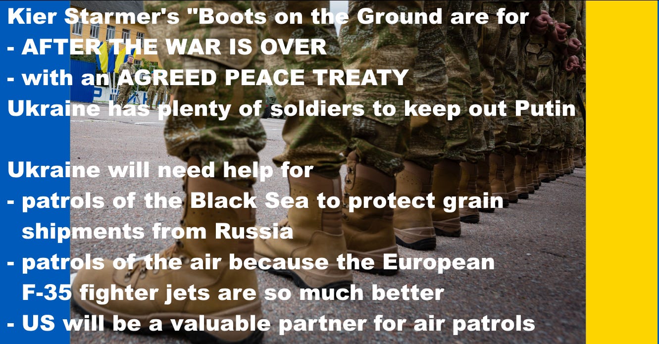 Kier Starmer's proposal is boots on the ground AFTER THE WAR IS OVER - about how to END the Ukraine war not start a new one - if it works - the war ends - if not - war continues until next solution