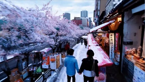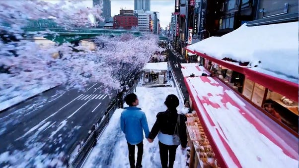 Look more closely. The way that couple is walking isn't natural. Or the way they turn their heads as they walk.