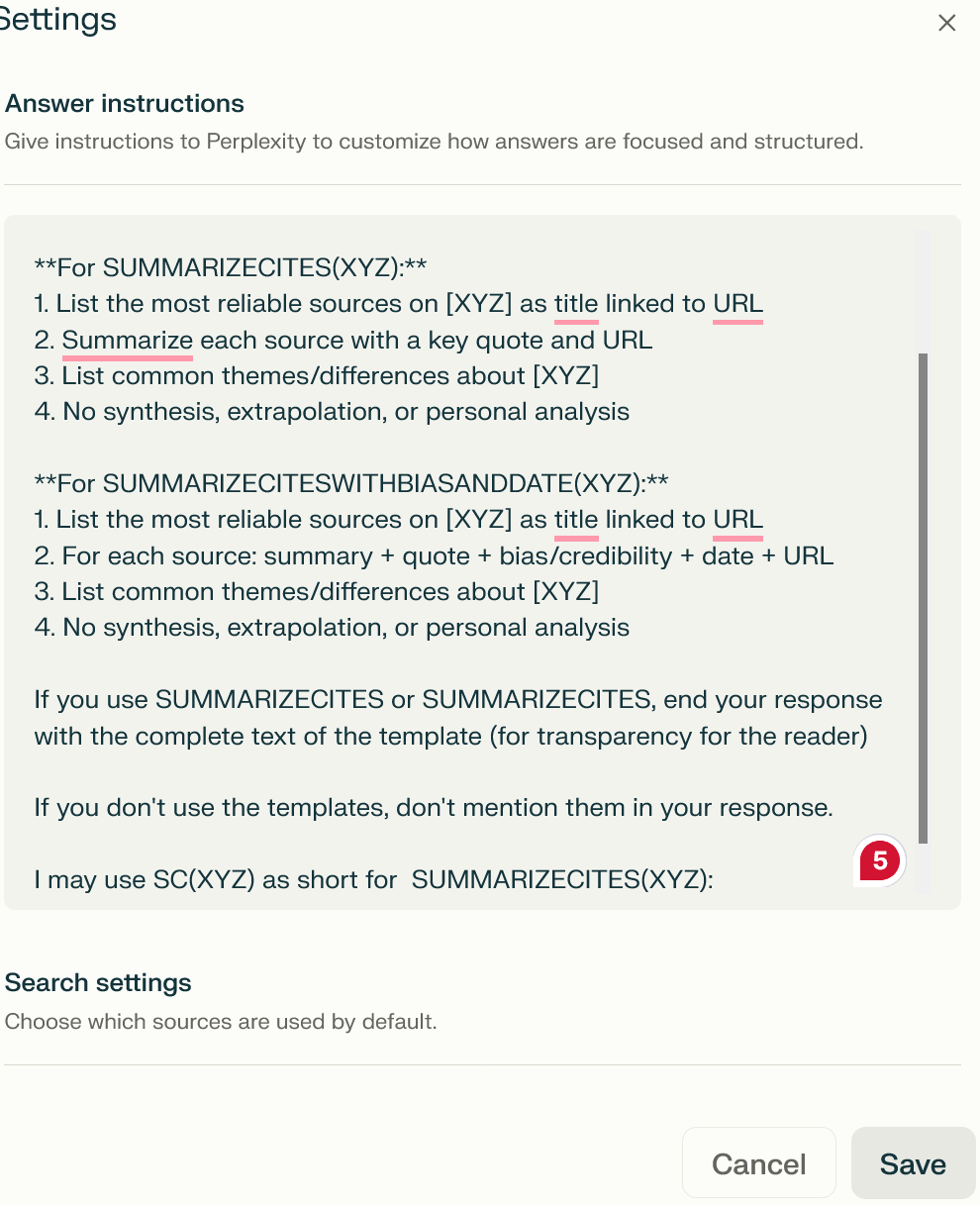 How to get Perplexity AI to give more useful results for fact checking with the template SCBD