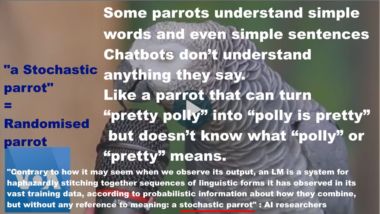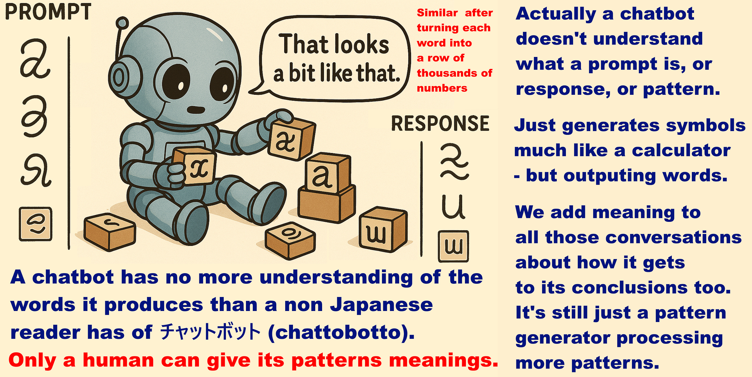 If you explain all this to a chatbot it will “agree” - the word pattern I just gave fits their training data.