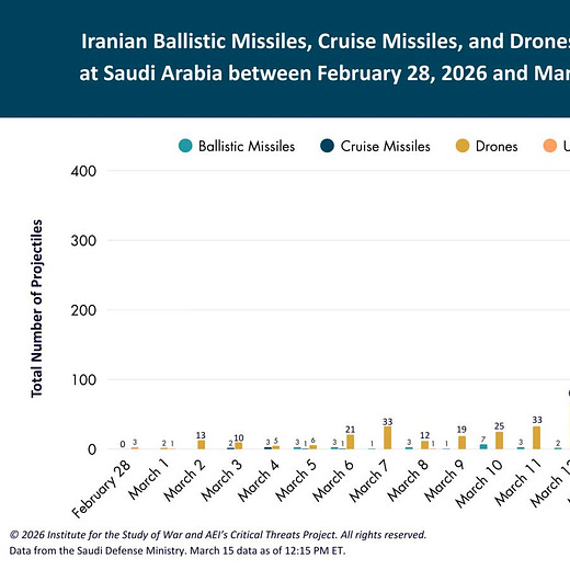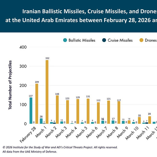 the Iranians are getting less and less able to fire missiles out of Iran. It’s stabailized at a bit over 100 drones a day but only 10 missiles a day.