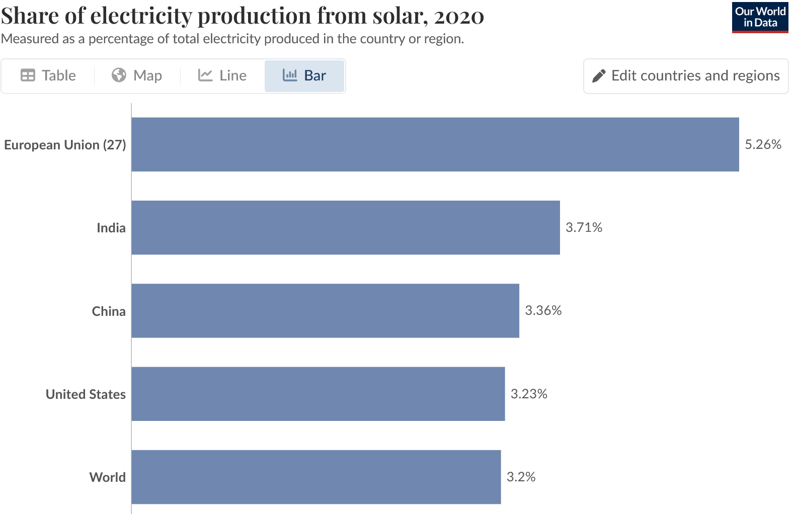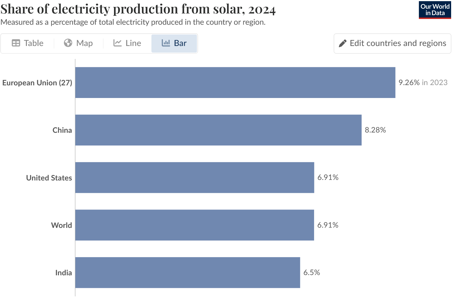 Then if you look at the share of electricity from solar