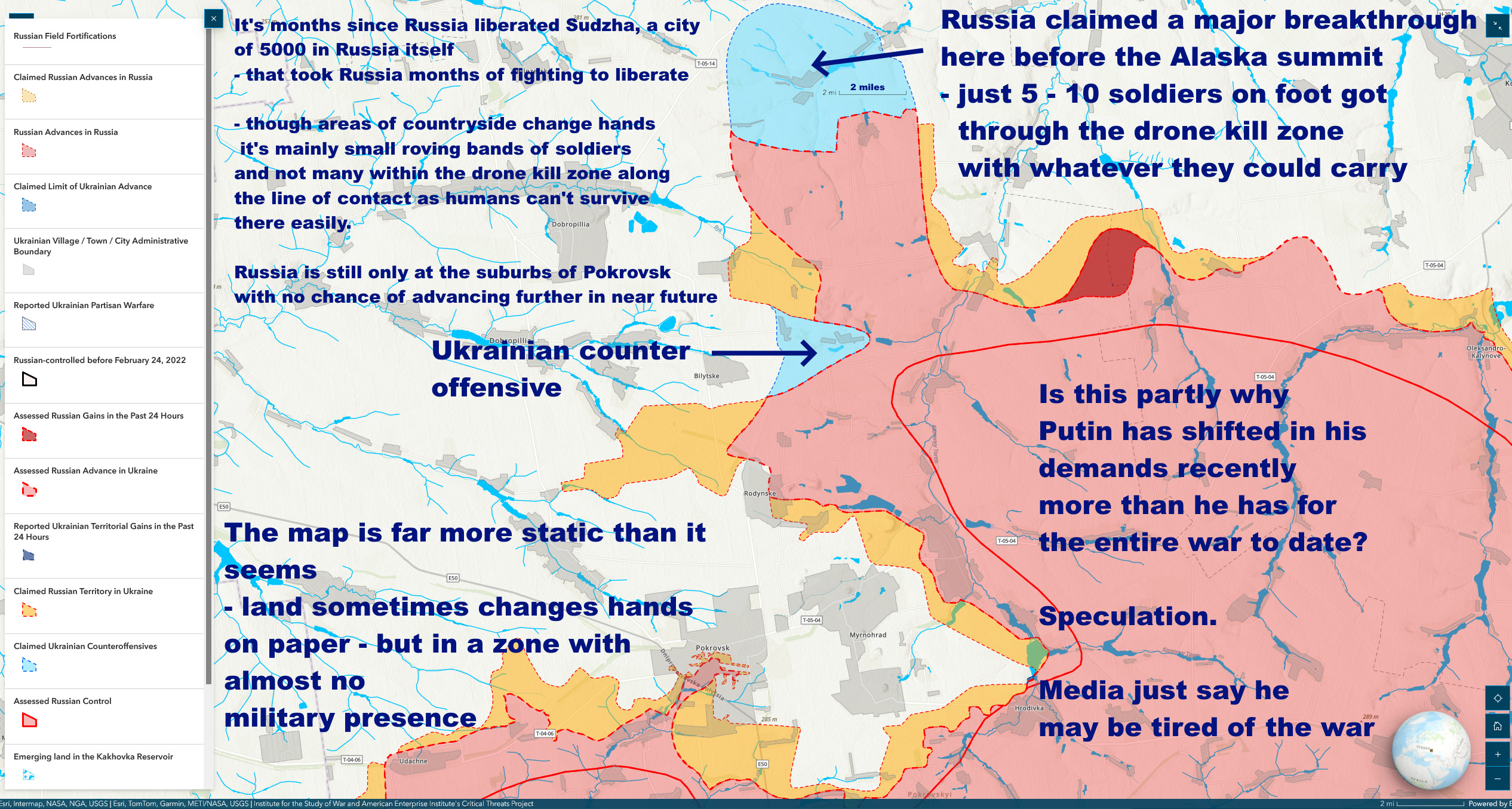 This is a tiny area - it’s only about 4 miles across. Yet Putin announced it as a big shift the day before the Alaska summit, only to lose it again soon after.