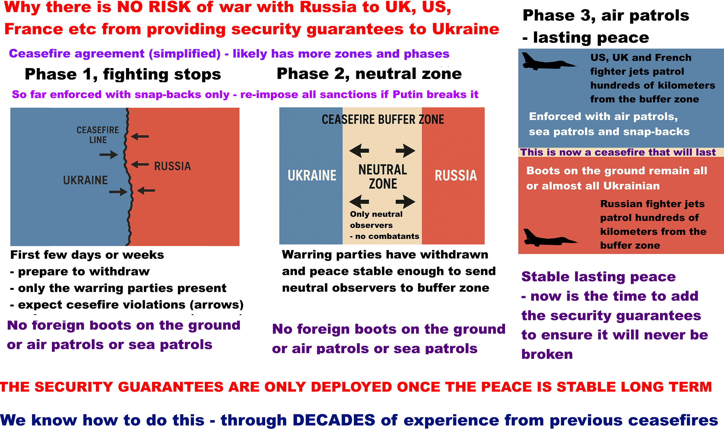 Why there is NO RISK of war with Russia to UK, US, France etc from providing security guarantees to UkraineCeasefire agreement (simplified) - likely has more zones and phases